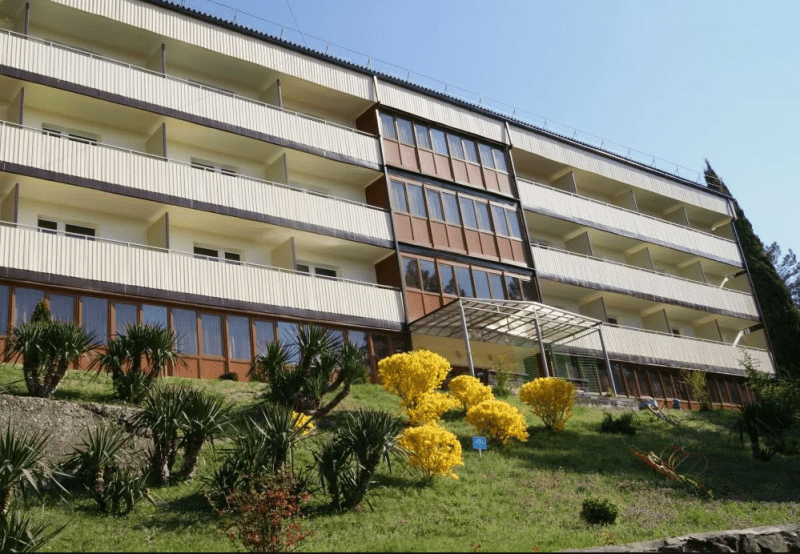 Поездом до ж/д вокзала г. Туапсе, далее 550 м до остановки «Северный-4», далее на маршрутном такси №22 до остановки «Городская больница», далее 930 м до остановки «Сафари Парк», далее на автобусе №565 до остановки «Санаторий Химик», далее 2,2 км до пансионата.